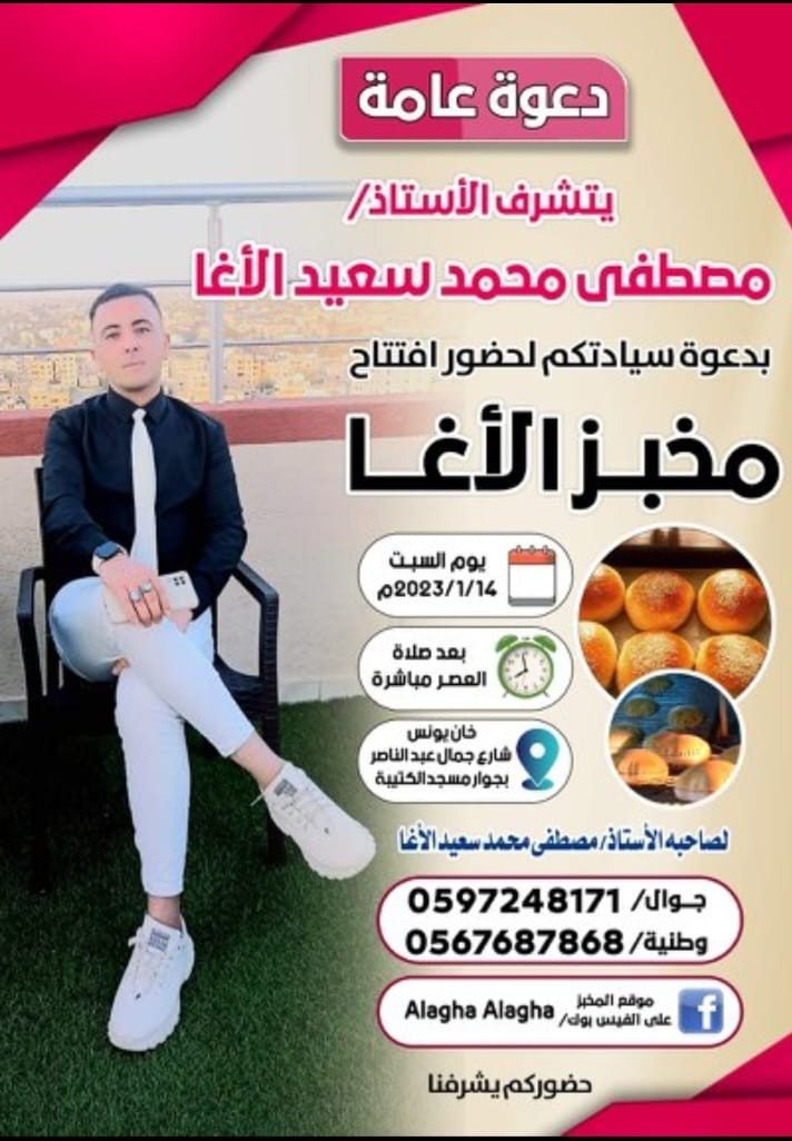 الرئيسة/إعلانات /دعوة لحضور افتتاح مخبز الأغا إعلانات دعوة لحضور افتتاح مخبز الأغا تاريخ النشر : الجمعة | 13-01-2023 | 18:48 3833 اضغط هنا للتواصل أو التعرف على السيد مصطفى محمد سعيد دياب شاكر الأغا يمكنك تلقي أحدث الأخبار أول بأول بانضمامك لإحدى مجموعات الواتساب الخاصة بالعائلة من خلال الضغط هنـا اظهر المزيد