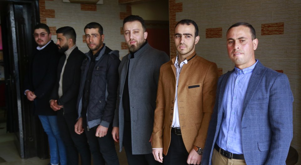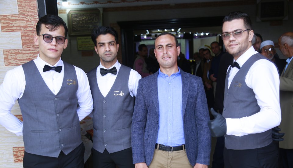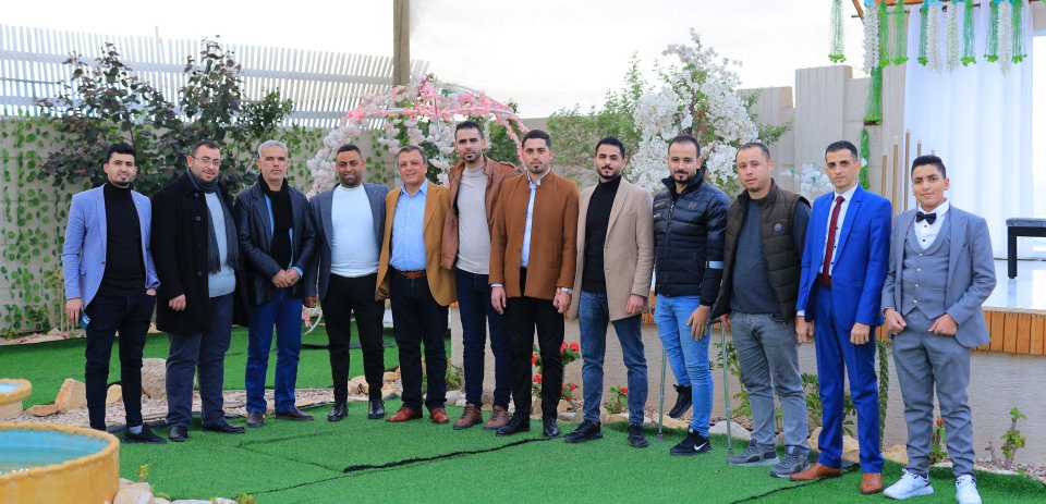 م. ناهض يوسف، أ. يوسف سليمان، أ. ايمن أحمد، الحاج اياد الأغا مختار العائلة، العريس، أ. منصف فخري، أ. محمد عثمان