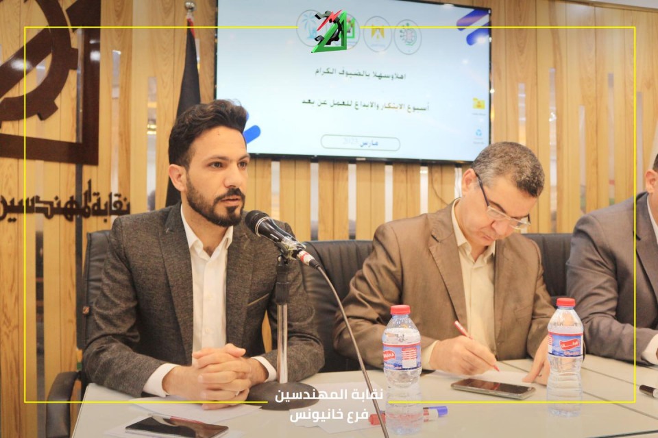وفي كلمته باسم نقابة المهندسين صرح م. ثائر معمر رئيس حاضنة الأعمال بالنقابة بأن نقابة المهندسين تولي مجال العمل عن بعد اهتماما خاصا نظرا لأهميته في توفير فرص عمل للخريجين.