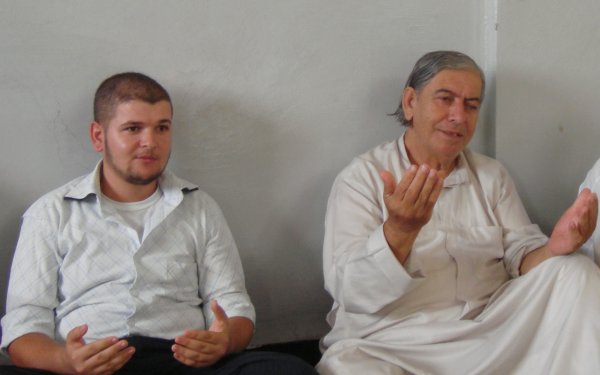 الحاج جعفر وحفيده يونس محمد صبري يدخلان مسجد جعفر