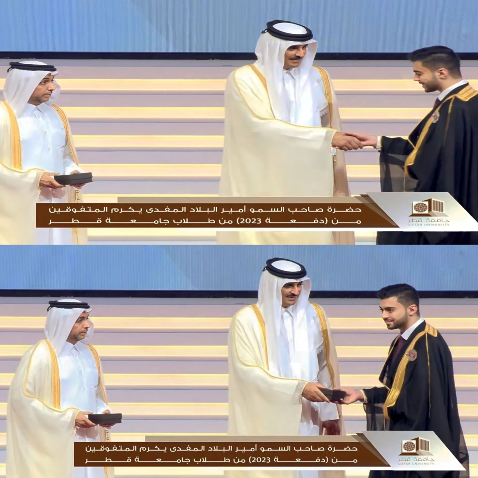 صاحب السمو الشيخ تميم بن حمد آل ثاني يكرم المتفوق باسل فيصل الشوربجي