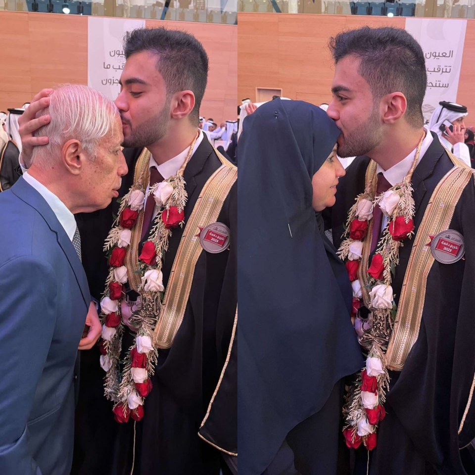 قبلة على رأس الوالدين تعكس البر والود والحب وفرحة النجاح