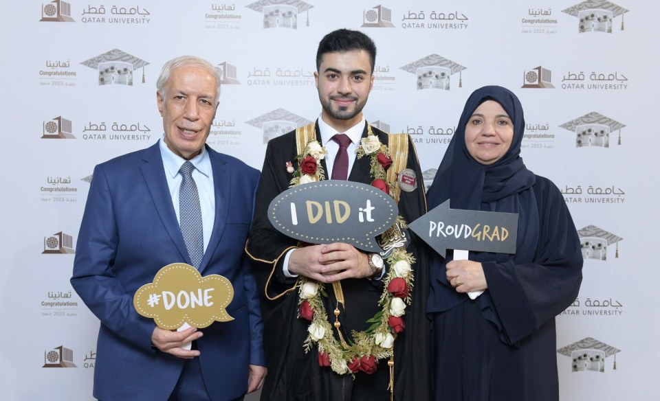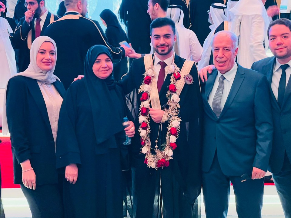 أتقدم بأحرّ التهاني وأطيب التبريكات إلى الصهر الغالي الوفي والأخ الحبيب الكبير مقاماً وقامة الفاضل فيصل الشوربجي وحرمه أختنا الحبيبة الغالية الحنون هيام ونجلهم الحبيب بشار وكريمتهم النوارة نور بمناسبة غالية علينا جميعاً بتفوق وتخرج نجلهم الأديب المهذب صاحب الخلق الجم في جامعة قطر كلية الإدارة والاقتصاد تخصص المالية والمحاسبة (باللغة الإنجليزية) بتقدير امتياز مع مرتبة الشرف وذلك برعاية كريمة من صاحب السمو الشيخ تميم بن حمد آل ثاني أمير دولة قطر.