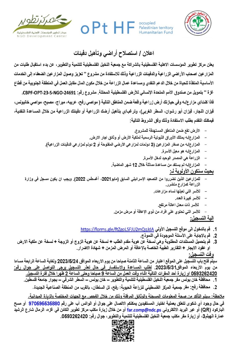 الرئيسة/إعلانات /اعلان استصلاح اراضي وتأهيل دفيئات إعلانات اعلان استصلاح اراضي وتأهيل دفيئات تاريخ النشر : الجمعة | 26-05-2023 | 10:50 2167 اضغط هنا للتواصل أو التعرف على المهندس معيد حمدي ملاحي بدوي أحمد إبراهيم(بدوي) الأغا يمكنك تلقي أحدث الأخبار أول بأول بانضمامك لإحدى مجموعات الواتساب الخاصة بالعائلة من خلال الضغط هنـا اظهر المزيد