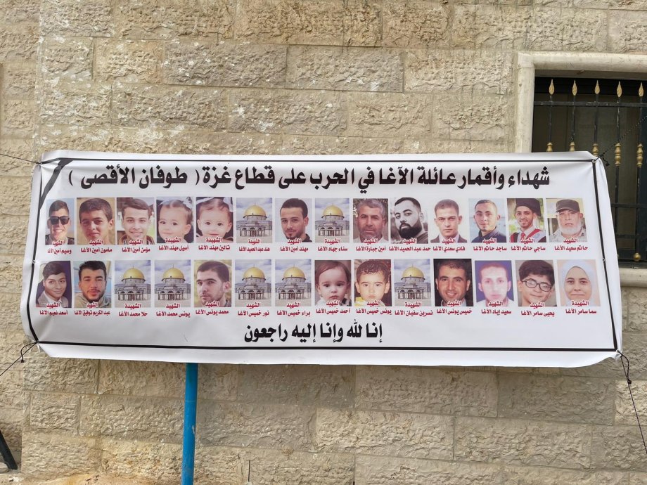 ترقوميا- تمت إقامة بيت عزاء لأقمار عائلة الأغا الذين ارتقوا خلال العدوان الإسرائيلي الحالي على قطاع غزة وقد بلغ عددهم 28 شهيدًا حتى اللحظة منهم 10 أطفال و3 نساء، سائلين الله العلي القدير أن يتغمدهم بواسع رحمته وأن يسكنهم فسيح جناته، وأن يلهم أهلهم وذويهم جميل الصبر والسلوان.