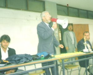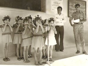 في المدرسة - آنذاك - كان أبو رامي يمسك عصاه المميزة من شجرة اللوز أو الليمون ! يشير بها ولا أذكر أنه ضرب بها أحداً ، وكانت له مشيّته المميزة ، وربما أتذكر الآن أنه كان فيها نوعاً من الفخر والزهو والاعتزاز بالنفس . كان كلامه ينساب من بين شفتيه ناعماً قوياً ، والإشارة بيديه أو سبابته تعكس وتعبر عن معاني الكلمات ، يعلمنا الحرف والكلمة والجملة ، وكان أول من علّمني وعلم الكثيرين غيري الكتابة ، فكان خير معلّم ، وكان أحسن معلّم ، كان في الدرس يتكلم باللغة العربية الفصحى بطريقة جميلة يحببها إليك ، وأقول أن له الفضل الأول في قدرتي المتواضعة على الكتابة وربما غيري كثيرون مثلي . وها هو اليوم نراه خطيباً مفوّهاً في كل المناسبات الأفراح والأتراح ، فكلماته قوية وجميلة ومؤثرة ، فيها ما قلَّ ودلَّ من الكلام ، وبأسلوبه الجميل يجذب انتباه مستمعيه .