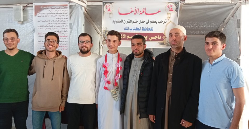 تتقدّم عائلة الأغا ممثلة بمختارها الحاج إياد أحمد الأغا "أبو أحمد"، بأسمى آيات التهنئة والتبريكات بمناسبة إتمام الطالب ناجي أيمن قاسم الأغا حفظ كتاب الله، سائلين الله أن يتقبّل منه ويجعله من أهل القرآن وخاصته، وأن يبارك في علمه وعمله..