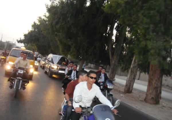 أثناء مرور موكب الزفة فى شارع صلاح الدين- السطر الشرقي