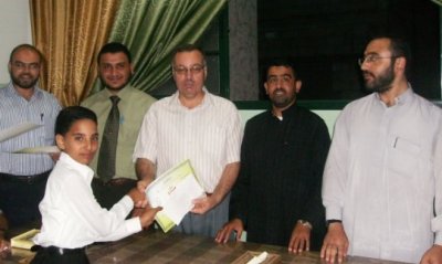 قامت إدارة مخيم تاج الوقار مدرسة الأقصى في أجواء عظيمة تملؤها الروحانية والسعادة بتكريم الطلاب الذين أتموا حفظ القران الكريم بالمخيم والذين بلغ عددهم 16طالبا في احتفال عقد بقاعة مركز الياسين بمسجد الشهيد الدكتور عبدالله عزام بعد صلاة المغرب مباشرة وحضر الاحتفال كل من معالي وزير الزراعة الدكتور محمد رمضان الأغا والأستاذ عبد الهادي الأغا والمهندس محمد جاد الله مدير دار القران بخان يونس والأستاذ مازن النجار رئيس دار القران وثلة من أولياء أمور الطلاب استهل الاحتفال بآيات عطرة من الذكر الحكيم قرأها الطالب بلال منهل الأغا قدم اللقاء المهندس بلال فوزي الأغا ثم تبعها كلمة للأستاذ عبد الهادي الأغا نيابة عن المنطقة حث فيها الطلاب على متابعة الحفظ وتمكين القران الكريم وفهم معانيه وتدبرها بعدما من الله عليهم بإتمام حفظه في هذا العام وبعدها ألقى الأستاذ مازن النجار رئيس دار القران بخان يونس نيابة عن دار القران الكريم هنأ فيها الطلاب على إتمام حفظهم لكتاب الله ودعاهم للالتحاق بديوان الحفاظ في مناطقهم وبشرهم بان دار القران تعمل على عقد دورات متقدمة في أحكام التجويد وبعد ذلك قام الطالب احمد أنور الجخلب بإلقاء كلمة الحفظة والتي كانت معبرة جدا استثار فيها مشاعر الحاضرين وشكر فيها القائمين على المخيم