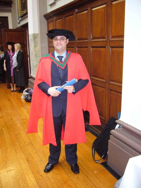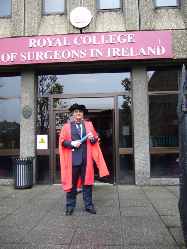 دبلن- إيرلندا- 19-11-2009 حصول الدكتور أحمد بسام مصطفى الأغا على درجة الدكتوراة في الصيدلة من كلية الجراحين الملكية بإيرلندا، وألف مبارك