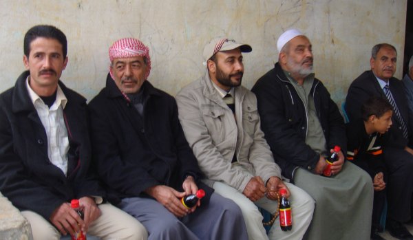 السادة الجالسون: علاء ماهر أبوطه، أحمد سليمان الأغا، علي(شقيق العروس)،