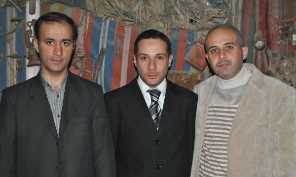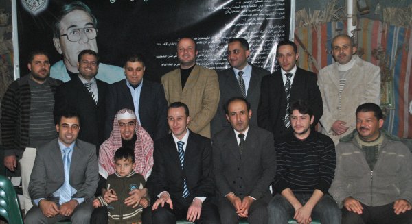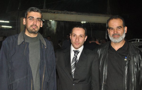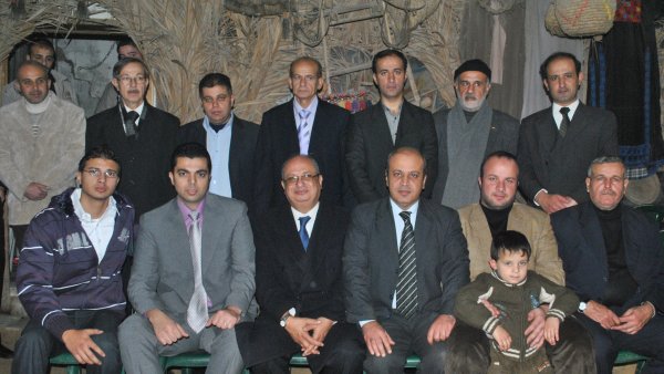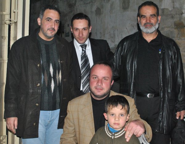 السادة الجالسون: سامي قاسم، محمد مروان وطفله مروان، م. عماد خالد، د. صهيب كمال،