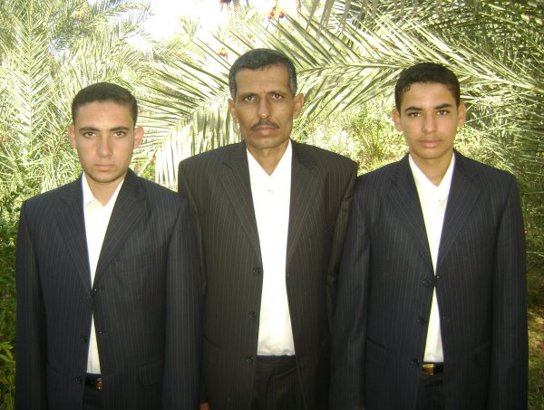 صورة من الأرشيف: الشاب أحمد(شقيق العريس)، نظير كمال (والد العريس)، الشاب محمد (العريس)