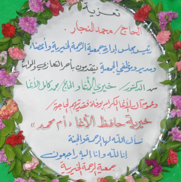 تعزية نشرت بجريدة فلسطين الصادرة بغزة 09-01-2010