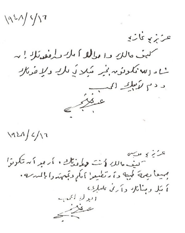 صور لبعض رسائل الشهيد عبدالقادر الحسيني الى زوجته وجيهة الحسيني (أم موسى)