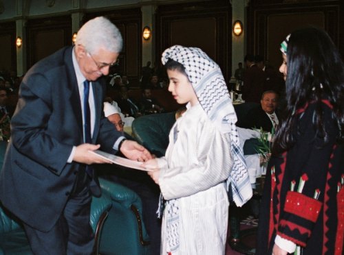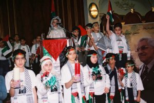 باسم المدرسة الفلسطينية الابتدائية الإعدادية للبنين والبنات، التي نعتز بالانتماء إليها، مشرفين، وموجهين، وإداريين، ومدرساتٍ وطلاباً، وطالبات، أقف أمامكم هنا ليس لتأبينِ القائدِ والرمزِ الرئيس/ ياسر عرفات فقط، ولا لأبرزَ محطاتِ نضالهِ الشاهدةِ والمشهودةِ، لكنني أوجزُ القولَ، بأن القائدَ الرمزَ ياسر عرفات، أرسى قواعدَ نضاليةً وسياسيةً واضحةً، يمكننا أن نسيير عليها لتحقيق حُلمه وحلم كل فلسطيني في إقامة الدولة الفلسطينية وعاصمتها القدس، وحق العودة، حسب ما نصت عليه القوانين الدولية، ولن يتحقق هذا إلا بتحملنا الأمانة سوياً. أيها الكرام الكرام وفاءً منا في المدرسةِ الفلسطينيةِ التي هي جزء من سفارتنا، أقمنا مهرجاناً خاصاً لتأبين الرئيس، باعتباره القائد الذي عرفناه، والزعيم الذي ناضل من أجل فلسطين على مدى أربعين عاماً. واليوم نشارك نحن الأشبال والزهرات، حملةَ العلمِ ومشاعلَ الإيمان، هذا المهرجان، إيماناً بأن حياةَ الرئيسِ دروسُ وعبر، وعلينا أن نقتفيها، ونسيرَ عليها من خلالكم أيها القادةُ والحضورُ. اسمحو لي القول، بأننا صُنّاعُ الحياةِ، وأملُ المستقبلِ، وبُناةُ الغدِ، لا يمكن أن تهزّنا عواصفُ الزمنِ بإذنِ الله كما علّمنا القائد( يا جبل ما يهزك ريح) ونحن الذين سنرفع معكم أيها الرجال الرجال، علم فلسطين على مآذن القدس، وكنائسها كما قالَ الرئيسُ( سيرفع علمُ فلسطينَ شبلًُُ من أشبالِنا، وزهرةً من زهراتنا على مآذنِ القدسِ) أنتم الحاضر، ونحنالمستقبلَ، والأملَ المشرقَ الذي لن ينطفئ نوره، والشمسَ التي لن تغيبَ، والقمرَ الذي لن ينزوي، لأننا من فلسطين، وفلسطين منّا بمكانةِ القلبِ للجسدِ. سيادةَ الرئيسِ / محمود عباس والوفد المرافق لقد استمعت إليكم تقولون في مخيمات بيروت وسوريا، إنّ فلسطينَ أمانةً، وعودةُ اللاجئينَ أمانةً، والقدسُ أمانةً، وهل هناك أسمى من هذهِ الأمانةِ، وهذا يجعلنا نزداد اطمئناناً، بأن وديعة الرئيس / ياسر عرفات، ووديعةُ أبناءِ فلسطينَ في الداخلِ والشتاتِ بأيدٍ أمينةٍ، فهنيئاً لنا بقيادةٍ أمينةٍ، وهنيئاً للشعب الفلسطيني برجالٍ صدقوا ما عاهدوا اللهُ عليه. نعدكم باسمِ كلِ أطفالِ وزهراتِ فلسطينَ أننا سنسيرُ معكم حتى نهايةِ الطريقِ، ونؤيدكم حتى ندخلَ فلسطينَ آمنينَ مطمئنينَ كما كانت في السابق. رحمَ اللهُ رئيسنا، وجميعَ شهدائِنا، وشفى الله جرحانا، ونأمل أن يُطلق سراح أسرانا ومعتقلينا. وفقكم الله لبناء ما خرّبه الاحتلال، وجمع شمل أهلنا، لبناء الدولة التي ننشدها، وليسجّل التاريخُ أيها القادةِ بأحرفٍ من نورٍ الحقبةَ الجديدةَ، ونحن الشهداءُ على ذلك، . وفقكم الله ونصركم نصراً عزيزاً، معتمدين على قول الله ( إنْ تنصروا الله ينصركم، ويثبّت أقدامكم).