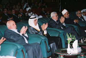 في حفل تأبين الرئيس ياسر عرفات بحضورالأخ أبو مازن، وأحمد قريع، والدكتور فياض وزير المالية والأخ أحمد بن محمود وزير الدولة للشؤون الخارجية القطري