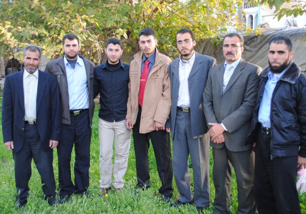 السادة الواقفون: تامر(شقيق العريس)، تبسيم، العريس، والد العريس