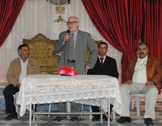 والد العروس، العريس، الأستاذ عمر عودة متحدثاً، والد العريس