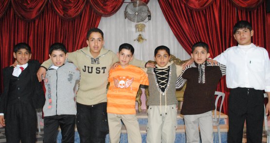 السادة: مروان(عم العروس)، العريس، محمد(شقيق العروس)، عمر(عم العريس)،