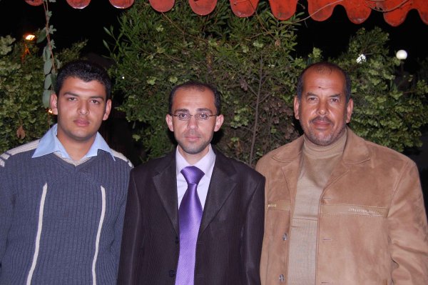 الحاج إبراهيم النحال ونجله احمد يتوسطهم العريس