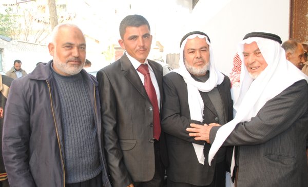 السادة: فايز دحلان، والد العريس، نايف بدوي، والد العروس، العريس،