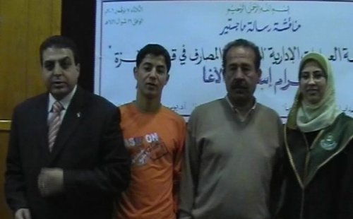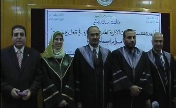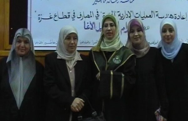 الجامعة الاسلامية بغزة 07-11-2006 ناقشت السيدة مرام اسماعيل سليمان حسن قاسم الاغا حرم د. أنور حمتو الاغا (سفير فلسطين في سيريلا نكا وجزر المالديف) رسالة الماجستيرا بعنوان اعادة هندسة العمليات الادارية (الهندرة) في المصارف في قطاع غزة، المناقشون د. محمد ابراهيم المدهون مشرفا، د. ماجد محمد الفرا، مناقشا، د. يوسف حسين عاشور مناقشا، تخصص تجارة بالجامعة الاسلامية بغزة، والف مبروك.