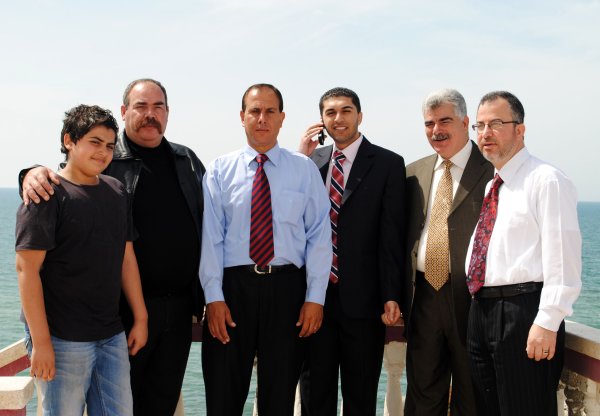 حمدي(عم العروس)، م. أسامة وشقيقه إياد(أبناء عم العروس)، والجالسون: والدى العروسين