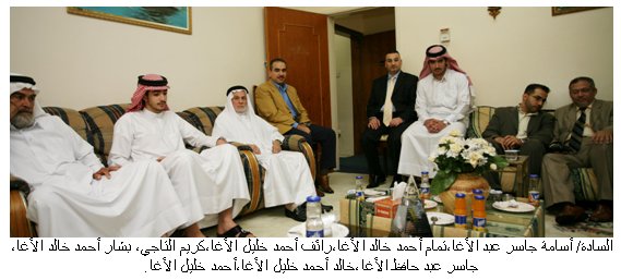 بحول اللــه وفضله تمت خطبة بلال إحسان عيد الأغا إلى كريمة السيد/ جاسر عبد حافظ الأغا، وذلك بحضور معظم أبناء العائلة في الدوحة وأصهار السيد/جاسر عبد، وبعض المقربين من الأصدقاء، وقام السيد/ يونس عبد نعمان الأغا بإلقاء كلمة جامعة وافية تخص المناسبة تلا ذلك طلبه للآنسة/ مها كريمة جاسر عبد حافظ الأغا.