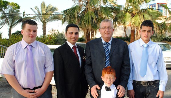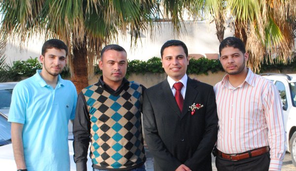 السادة الواقفون: أ. ياسر كمال، أ. أرسلان كامل، عم العروس، إيهاب الشوا، أحمد عبدالمجيد، سفيان شبير(ابن عمة العريس)،