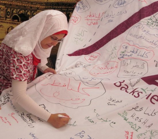 واحنا في المدرسة الفلسطينية داعمينك يا قطر بالغوالي