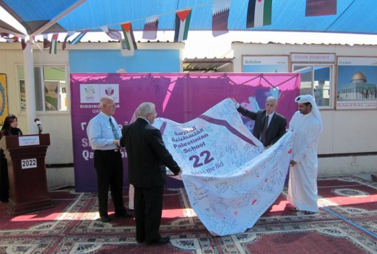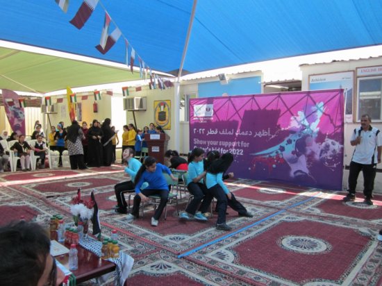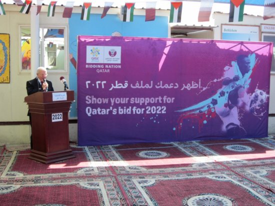 يشرفنا في المدرسة الفلسطينية بالدوحة إقامة فعالية رياضية بالمدرسة المتواضعة بإمكاناتها، الكبيرة بقدراتها وعزائم العاملين بها، دعماً لملف قطر بنسختها الثانية والعشرين في 2022، معتبرين هذا واجباً وطنياً ملزماً لنا، وفاءً لقطر وأميرها وولي عهدها، وإكراماً لشعبها المضياف، وحباً لكرة القدم، وباعتبارنا جزءاً لا يتجزأ من منظومة الحياة العامة بدولة قطر، ومكوناً أصيلاً من مكوّن الأمة العربية والإسلامية التي أتمنى عليهم أن يكونوا جميعاً سفراء لملف قطر 2022.