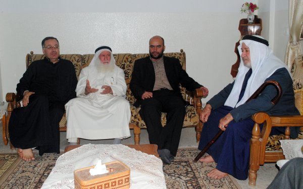 السادة الجالسون: الشيخ فتحي رمضان(زوج شقيقة د. محمد حسان)، الحاج عدنان صالح،