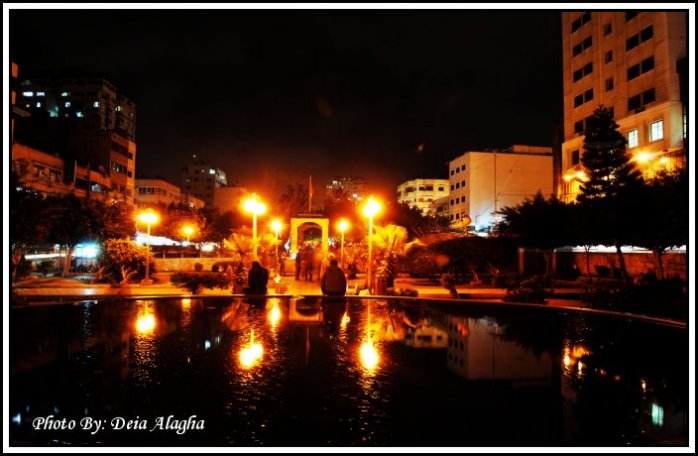 إنعكاس رائع للضوء،، نافورة الجندي المجهول-غزة
