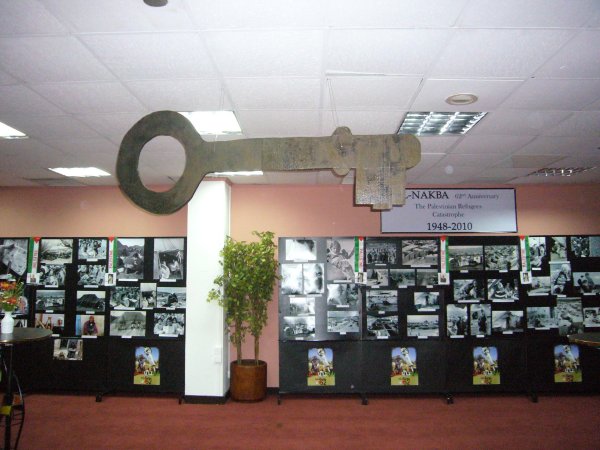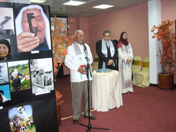 فقد إشتمل المعرض على صوراً لللاجئين الفلسطينيين منذ العام 1948، مروراً بسنوات المعاناة و الدمار و المجازر التي أرتكبتها العصابات الصهيونية و قوات الإحتلال الإسرائيلي بحق أبناء شعبنا على مدى العقود الستة الماضية، كما إشتمل المعرض على عرض مواد إعلامية مرئية للغرض ذاته، مع عرض جوانب مختلفة من التراث الفلسطسني و معالم الهوية الفلسطينية، و قد إرتدى المشاركون بالإفتتاح و الزائرين للمعرض الكوفية الفلسطينية مطبوعاً عليها كلمة النكبة.