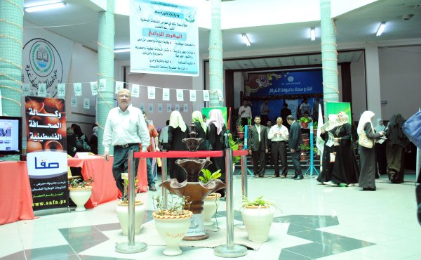 وبعد ذلك دعا أ. ملاذ الأغا الحضور الكريم إلى التوجه لافتتاح معرض المؤتمر " المنتجات الوطنية الفلسطينية .. تميز رغم الحصار "
