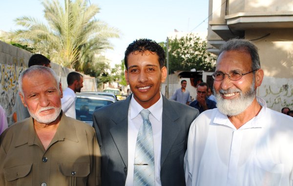 السادة: فضل محمد الأغا، العريس، علاء خميس الأغا