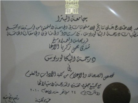 بمناسبة تخرجها في جامعة البتراء بالمملكة الأردنية الهاشمية – كلية الصحافة والإعلام