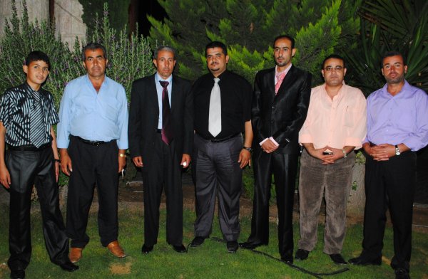 د. عبدالقادر فارس(خال العريس)، د. وفيق حلمي الأغا، والد العريس، بسام الفرا
