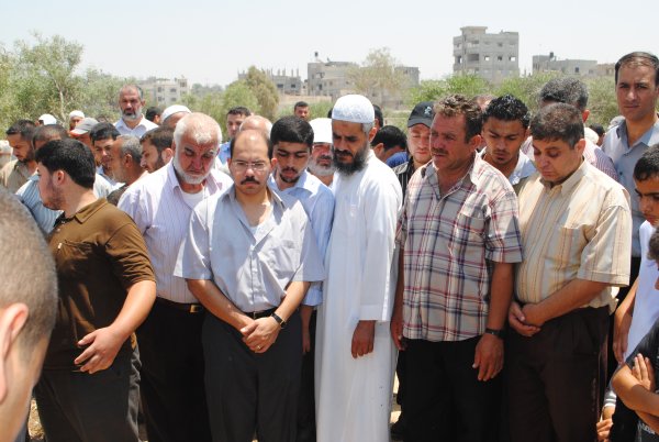 السادة: د. كرم رمضان الأغا، عوني وصفي الأغا، أ. منير سليم الأغا، أحد المشيعين،