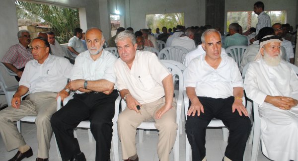 السادة الجالسون: أ. هلال عاشور الأغا، المحامي سليم السقا، د. مروان سليم الأغا،