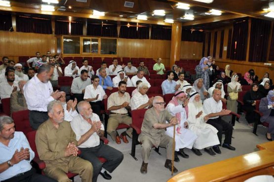 يظهر المدعوين مصفقين تبدو الفرحه على وجوههم بعد اعلان حصول م.احمد على الماجستير