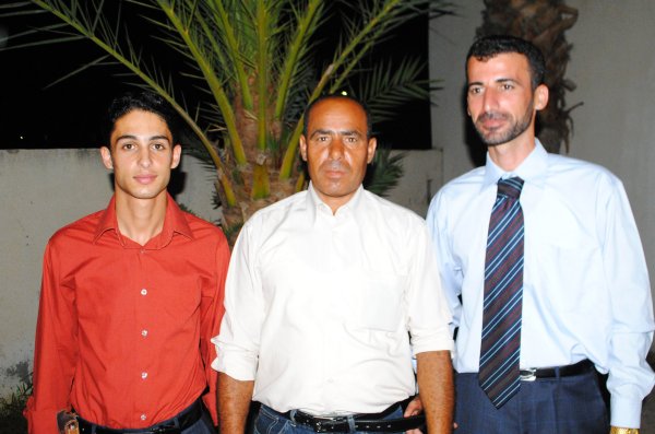 السادة الجالسون: د. ياسر سليم الأغا(القادم من الإمارات)، أ. أحمد(عم العروس)، أ. حيدر(عم العروس)