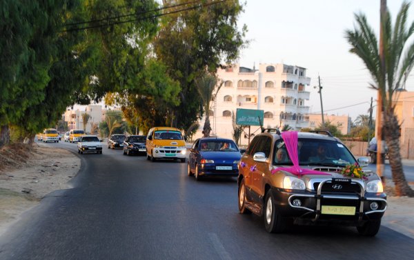 أثناء مرور موكب الزفة(طريق صلاح الدين- القرارة)