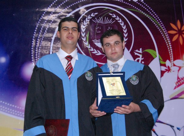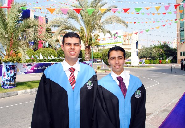 الخريجان: أحمد محمد(يزيد) حمدي الأغا(الأول على قسم الصحافة والإعلام- كلية الآداب)