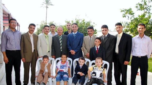 السادة الجالسون: إياد أشرف القدرة(ابن شقيق العريس)، أ. أشرف(شقيق العريس)،والد العريس،