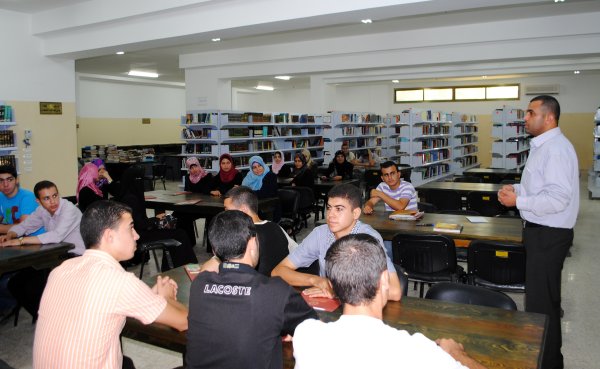 مدير مكتبة جامعة فلسطين يشرح للطلاب عن المكتبة