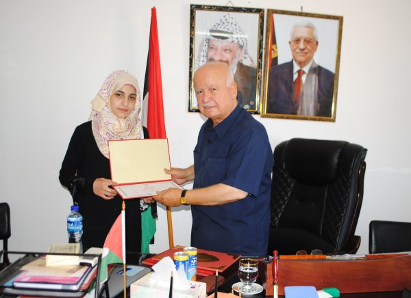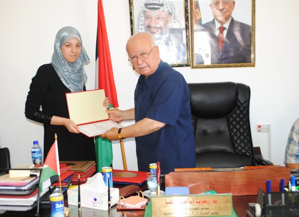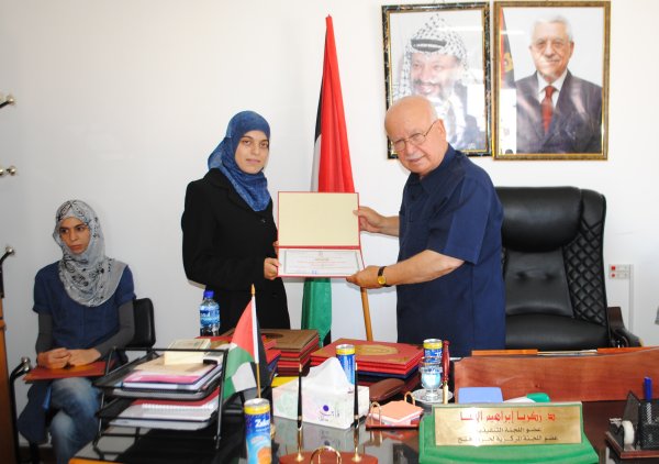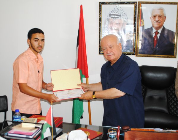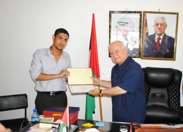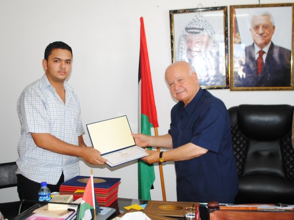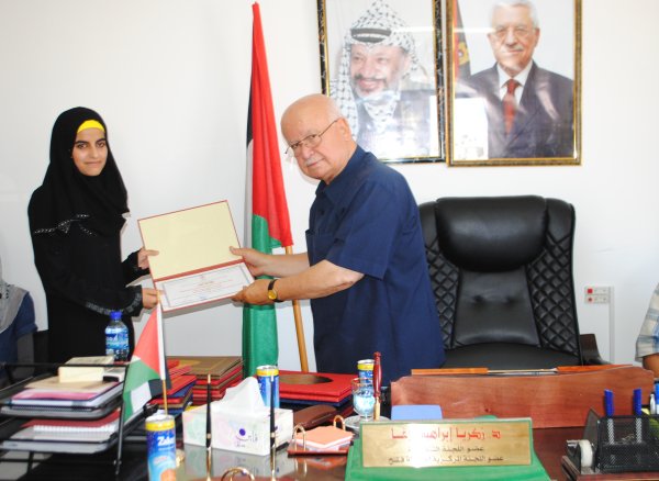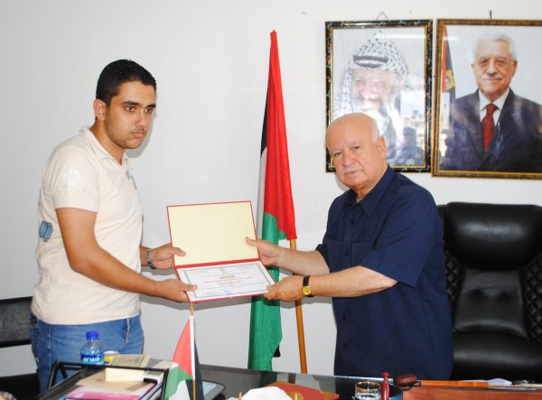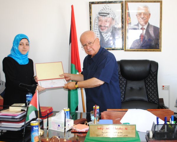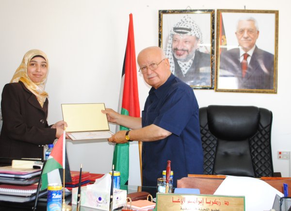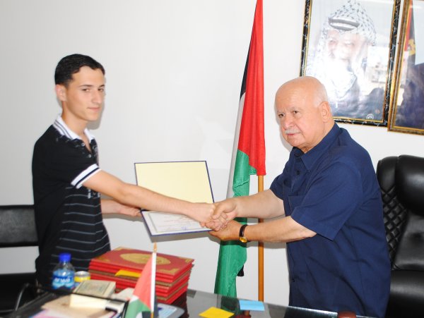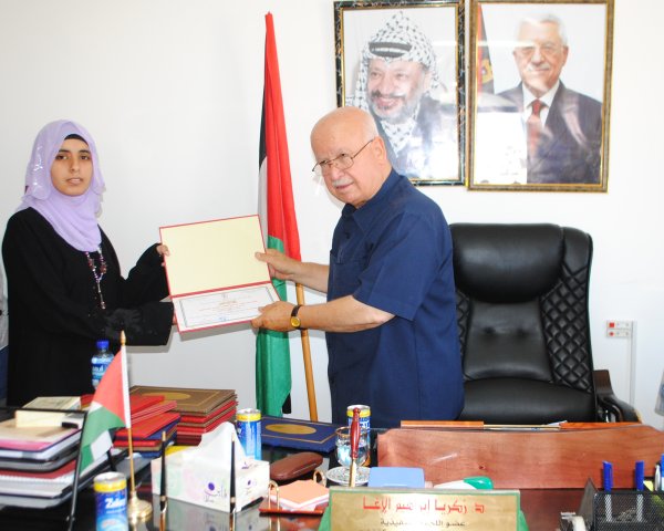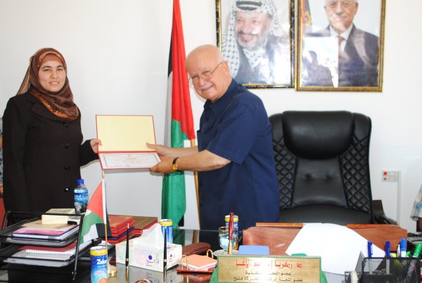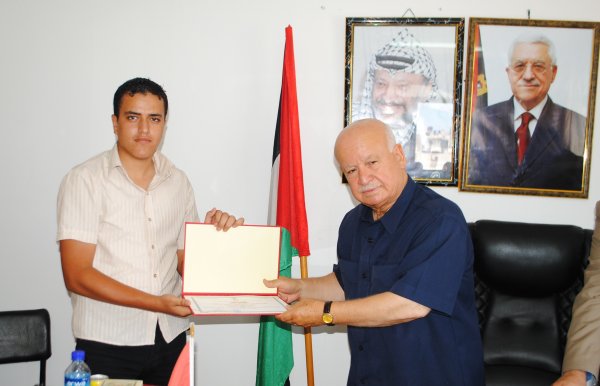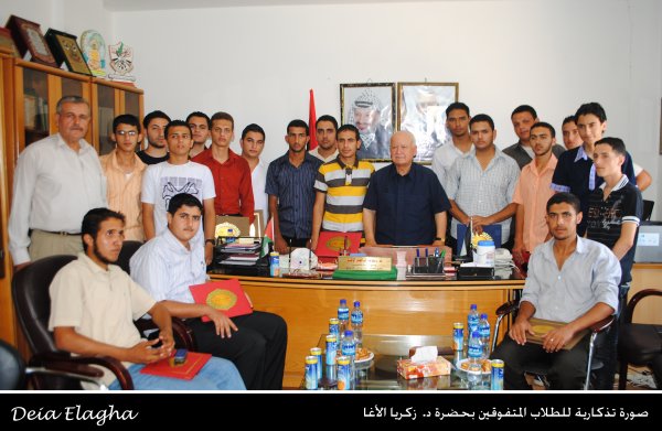 قام د. زكريا الأغا رئيس دائرة شئون اللاجئين بتوزيع الجوائز وشهادات التكريم على أوائل قطاع غزة بفرعيه العلمي والأدبي