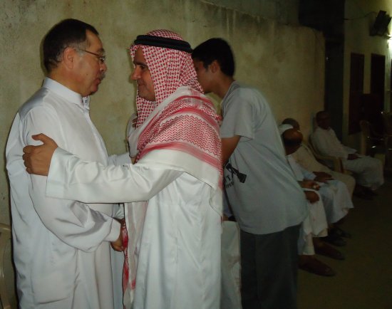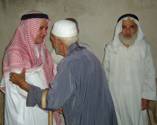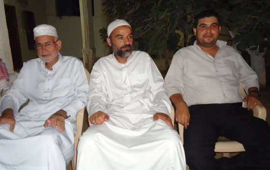 الشيخ سعيد يحيى الأغا، الدكتور إسماعيل وصفي الأغا يصافح الحاج يوسف الأغا(أبو هاشم)