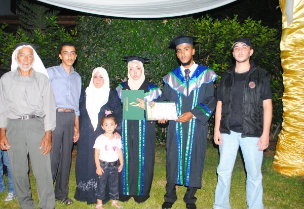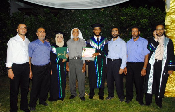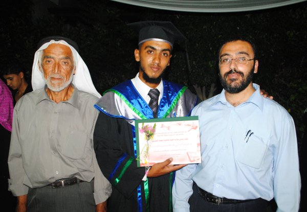 أ. بسام محمد الأغا(عميد الكلية- خان يونس)، زياد(عم الخريجة)، أ. عبدالهادي(عم الخريجة)،